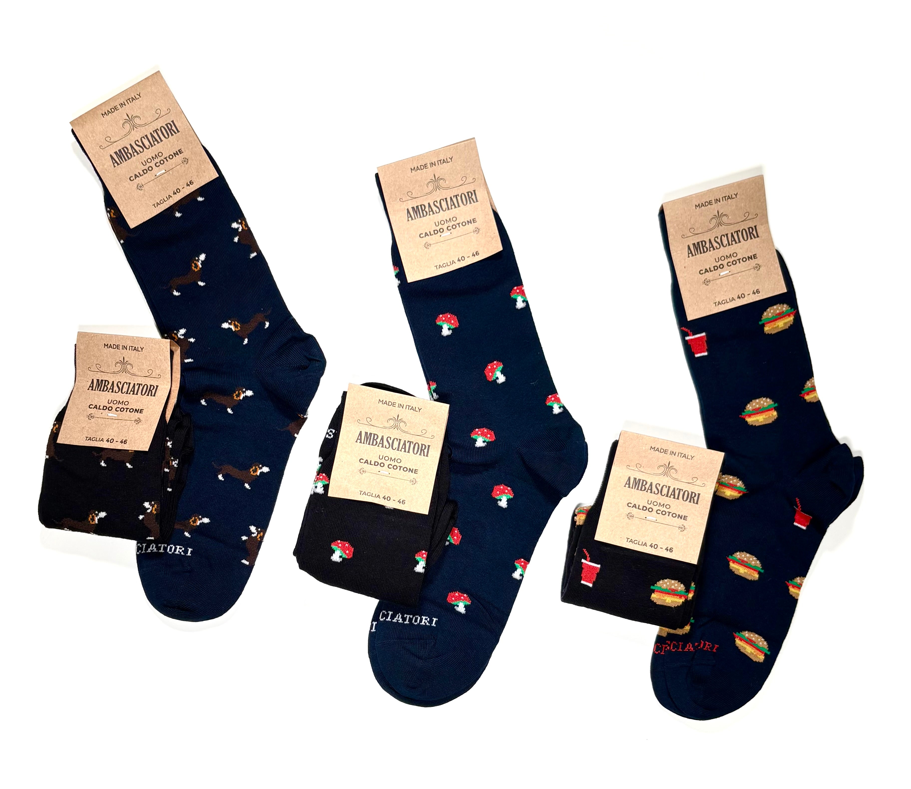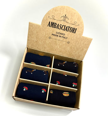Rendi unico il tuo outfit con le calze marca Ambasciatori! Realizzate con materiali di alta qualità e design elegante, queste calze uomo ti offrono comfort e stile. Ideali per ogni occasione, mostra il tuo stile e la tua personalità con le calze Ambasciatori.